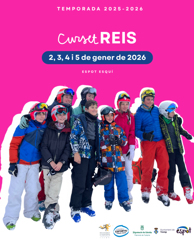 El curset de Reis tindrà lloc del 2 al 5 de gener de 2026 a l’estació d’Espot, de 10h a 13h. Es tracta d’un curs intensiu d’esquí alpí* per grups reduïts segons el nivell d’iniciació i perfeccionament d’acord amb les consideracions dels monitors i monitores de l’escola. Informació rellevant del curset: