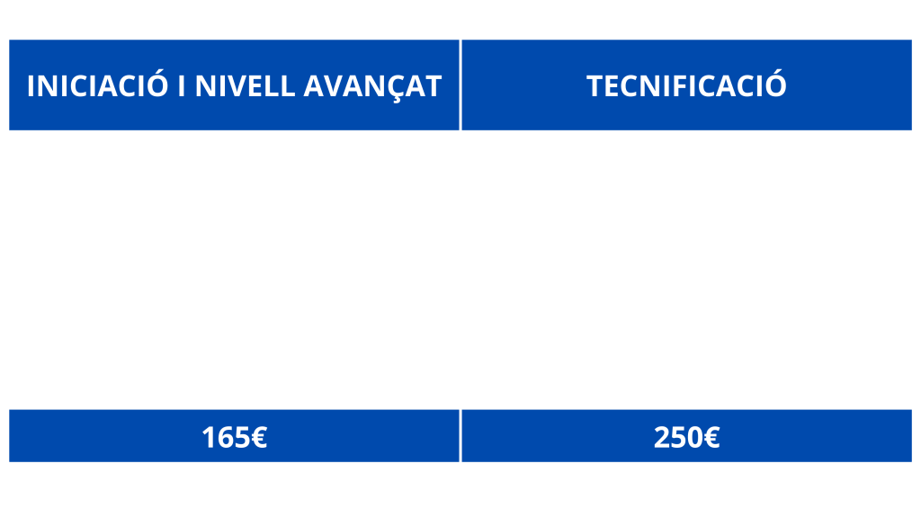 *El curs de tecnificació només es durà a terme si hi ha un mínim de 5 participants. *El preu inclou 3h de curset al dia, assegurança i dessuadora del CET